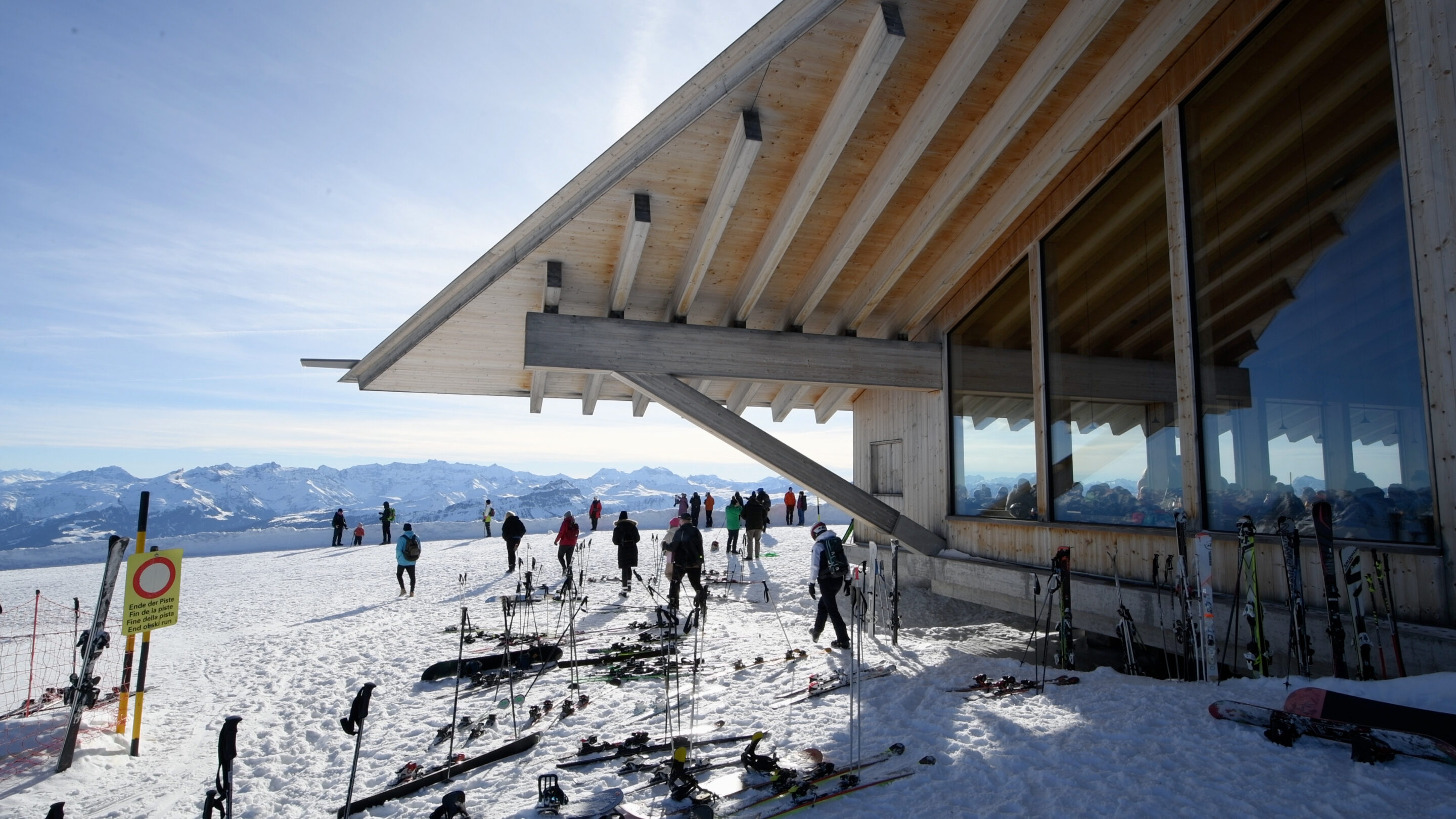 La station amont sur le Chäserrugg séduit par son expression qui donne à voir à la fois une grange, un chalet ou une station d’altitude. Le bâtiment élève l’art de la charpente à un nouveau niveau, avec des porte-à-faux colossaux, des angles de toiture en pointe et des poutres imposantes qui permettent des portées et des hauteurs remarquables. Les architectes intègrent habilement l’existant dans un nouvel ensemble qui, grâce au bois, s’insère de manière exemplaire dans l’environnement. Le résultat : une force tranquille au cœur de la montagne.